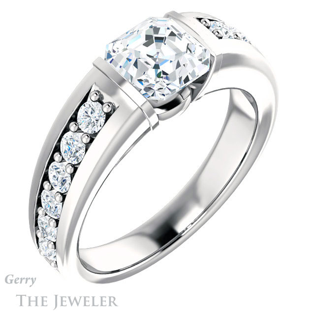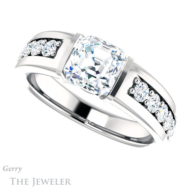 Asscher Cut Forever One Engagement Ring Setting #GTJ923-asscher-fo-w