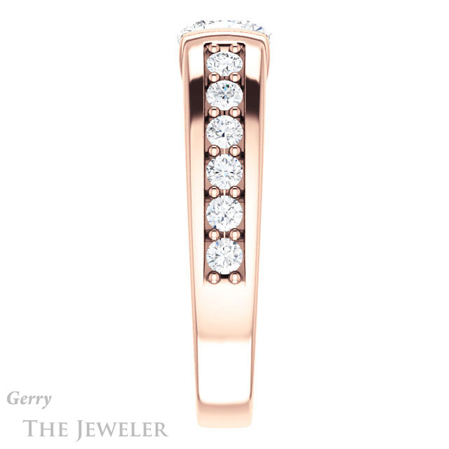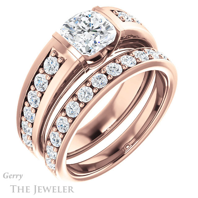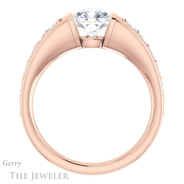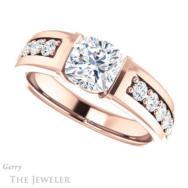 - This design can be set with your choice of certified lab grown diamond or moissanite center gem.Â