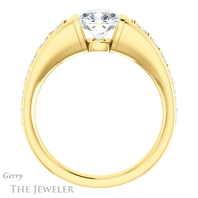 - This design can be set with your choice of certified lab grown diamond or moissanite center gem.Â