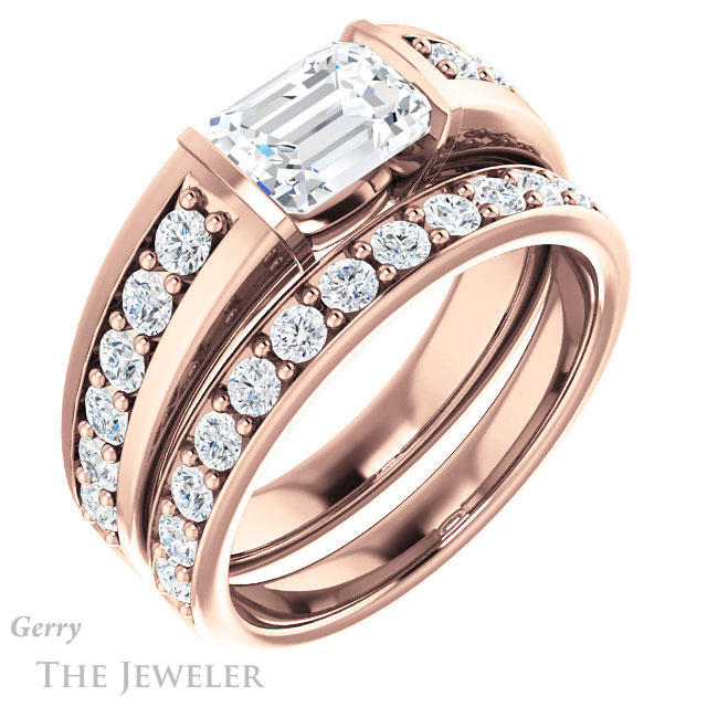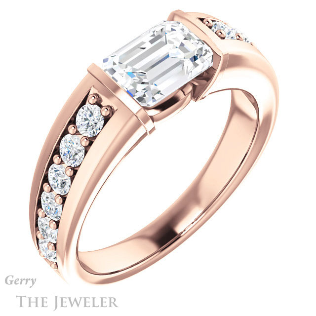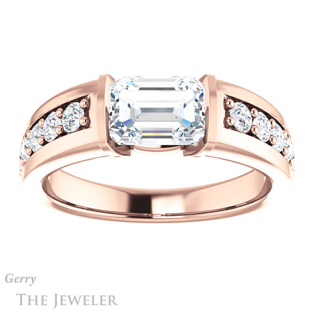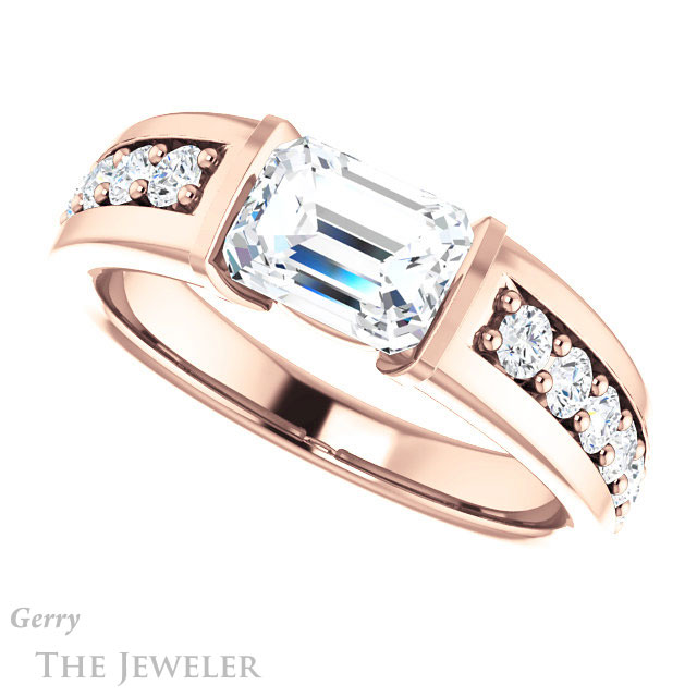 Emerald Cut Forever One Moissanite Engagement Ring #GTJ923-emerald-fb-r