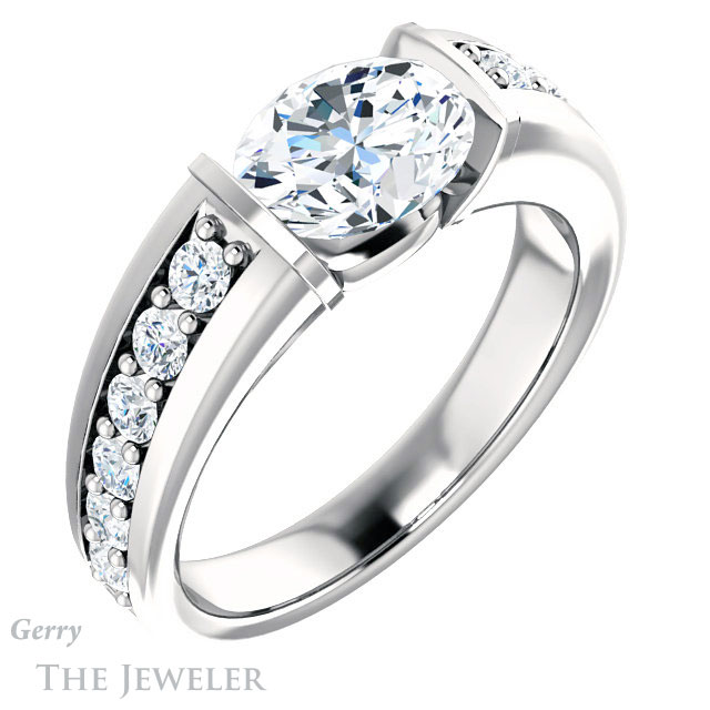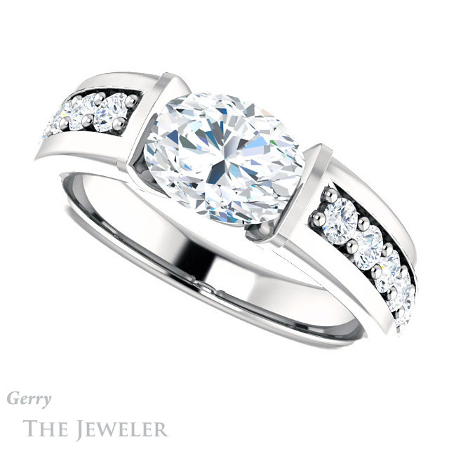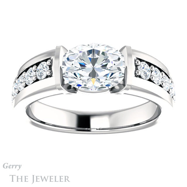Oval Shaped Forever One Moissanite Engagement Ring #GTJ923-oval-fo-w