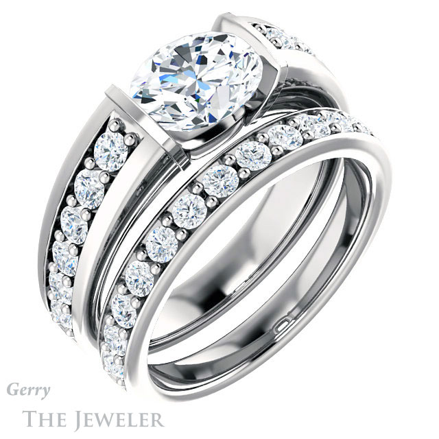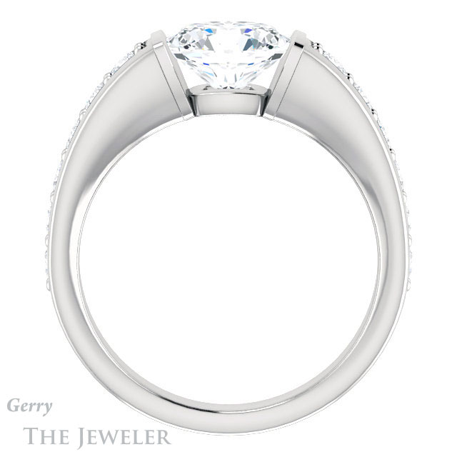 - This design can be set with your choice of certified lab grown diamond or moissanite center gem.Â
