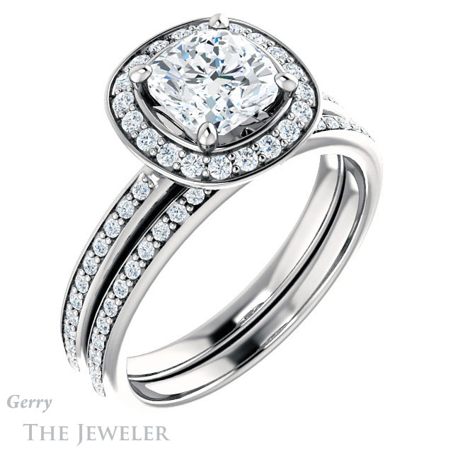 Cushion Cut Forever One Moissanite Engagement Ring #GTJ934-cushion-fo-w
