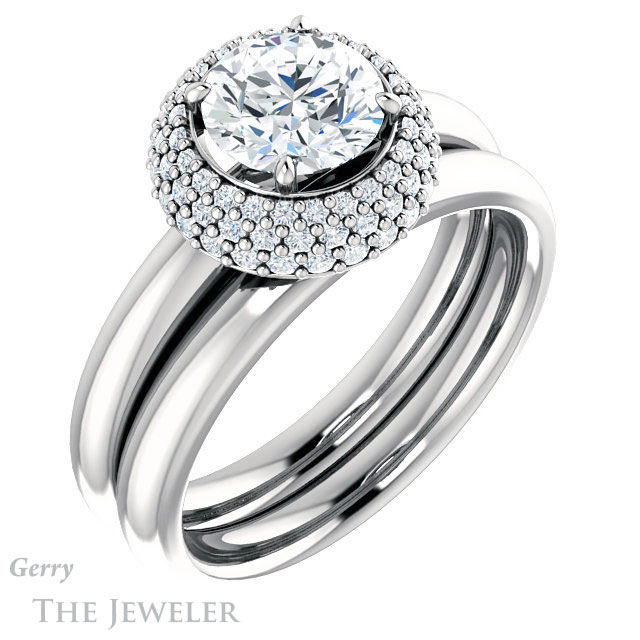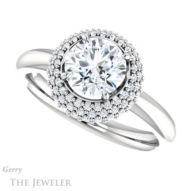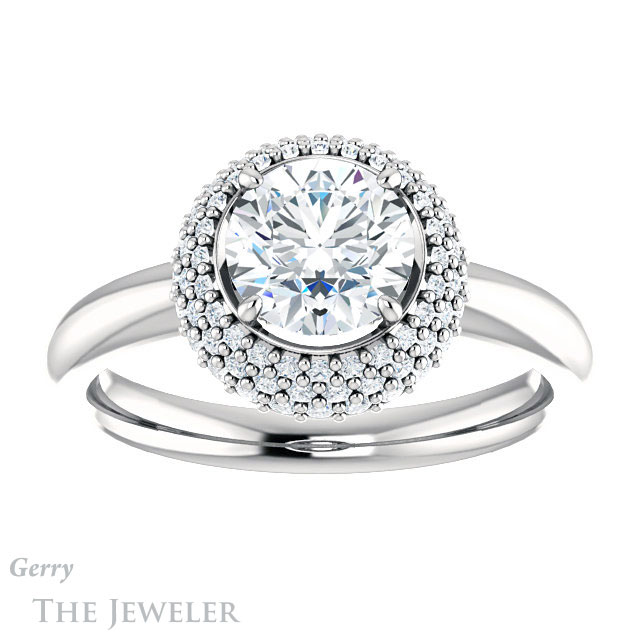 Round Cut Forever One Moissanite Engagement Ring #GTJ939-round-fo-w