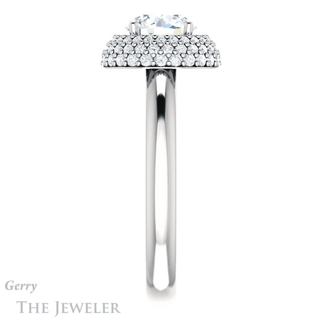 - This design can be set with your choice of certified lab grown diamond or moissanite center gem.Â