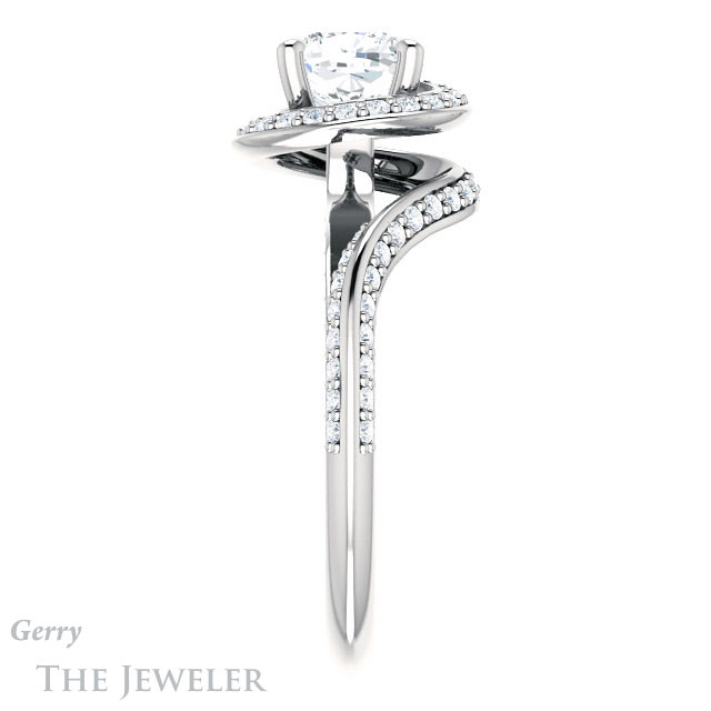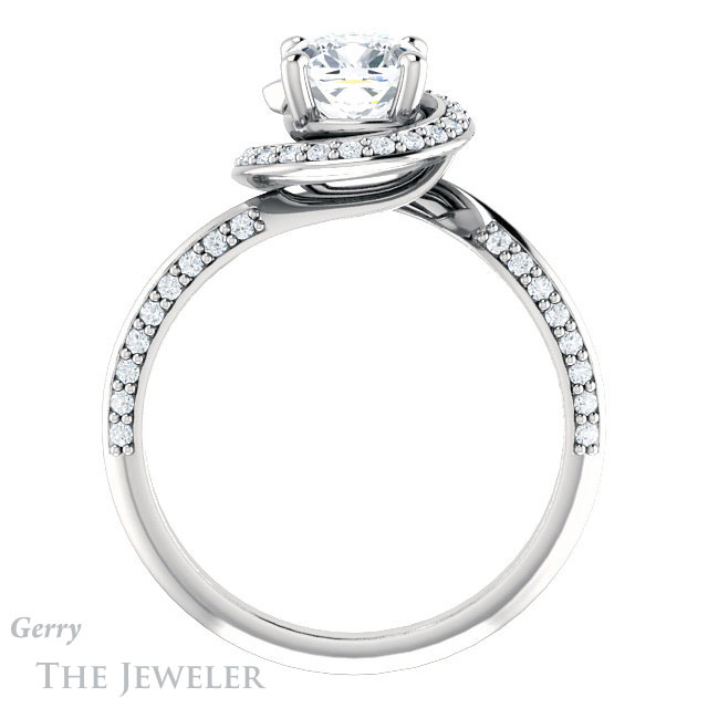 - This design can be set with your choice of certified lab grown diamond or moissanite center gem.Â