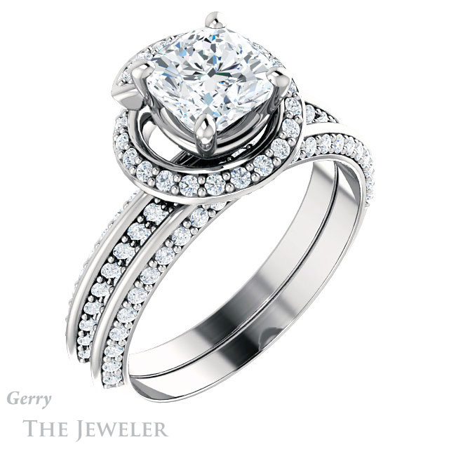 Cushion Cut Forever One Moissanite Engagement Ring #GTJ954-cushion-fo-w