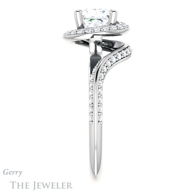 - This design can be set with your choice of certified lab grown diamond or moissanite center gem.Â