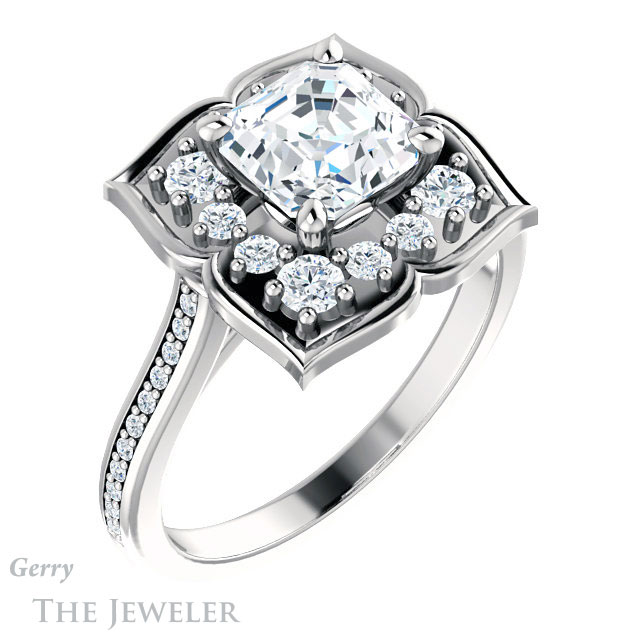 Asscher Cut Forever One Engagement Ring Setting #GTJ955-asscher-fo-w