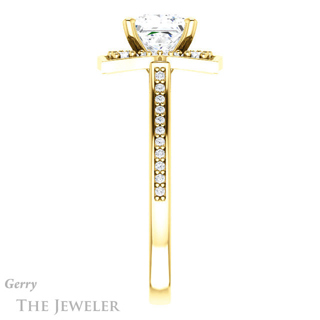 - This design can be set with your choice of certified lab grown diamond or moissanite center gem.Â
