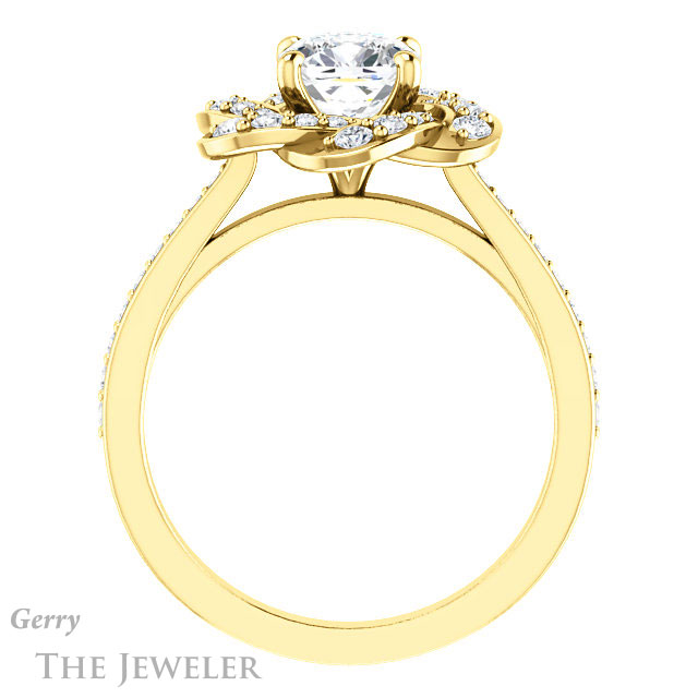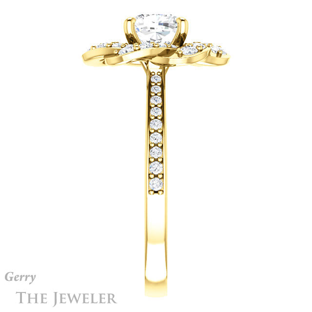 - This design can be set with your choice of certified lab grown diamond or moissanite center gem.Â