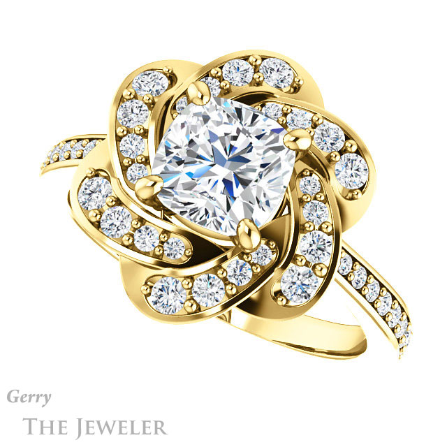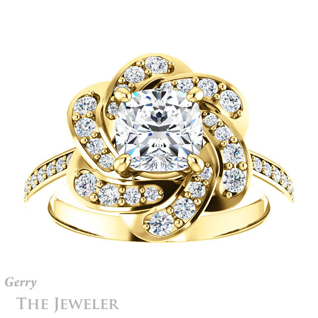 Cushion Cut Forever One Moissanite Engagement Ring #GTJ961-cushion-fo-y