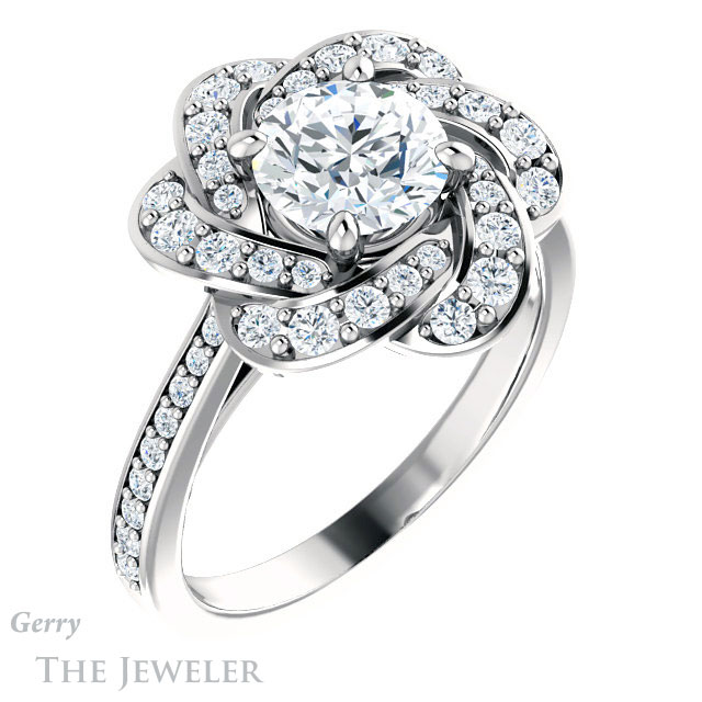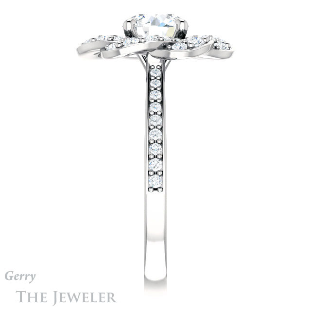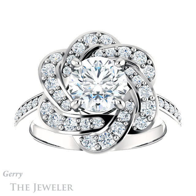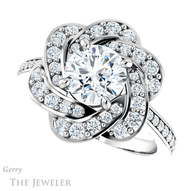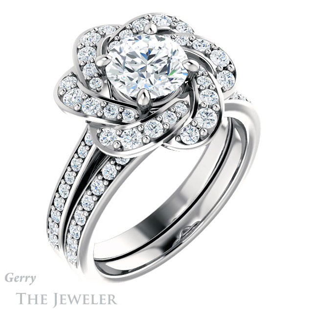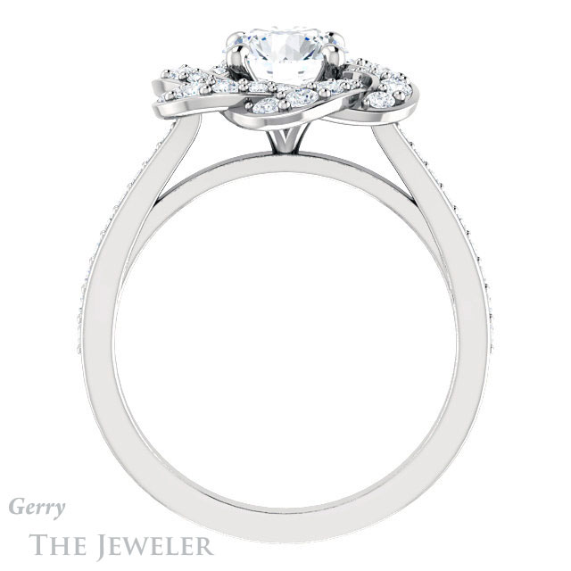- This design can be set with your choice of certified lab grown diamond or moissanite center gem.Â