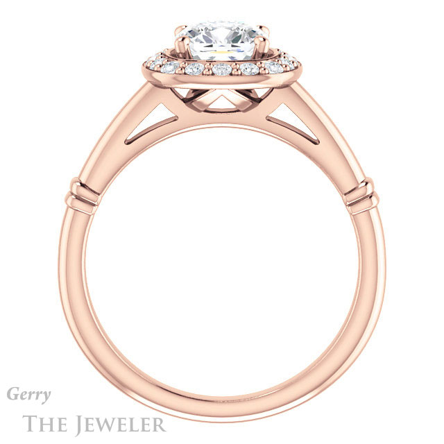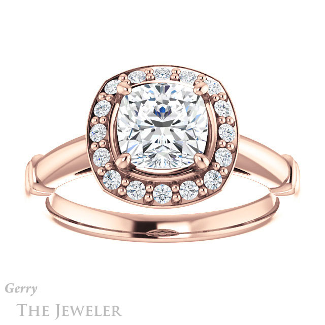 - This design can be set with your choice of certified lab grown diamond or moissanite center gem.Â