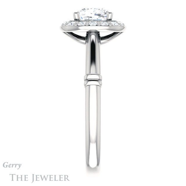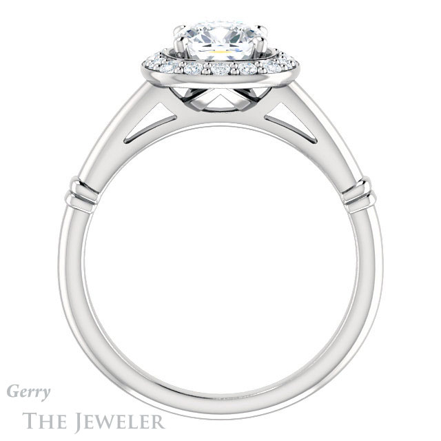 - This design can be set with your choice of certified lab grown diamond or moissanite center gem.Â