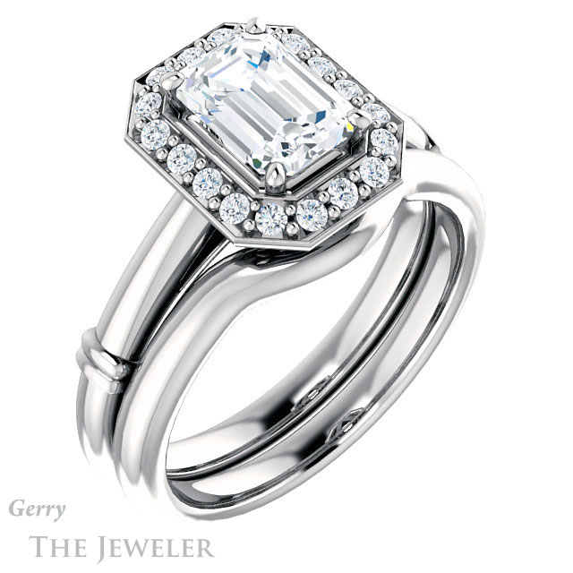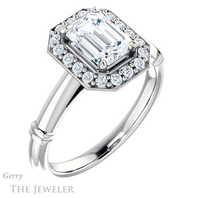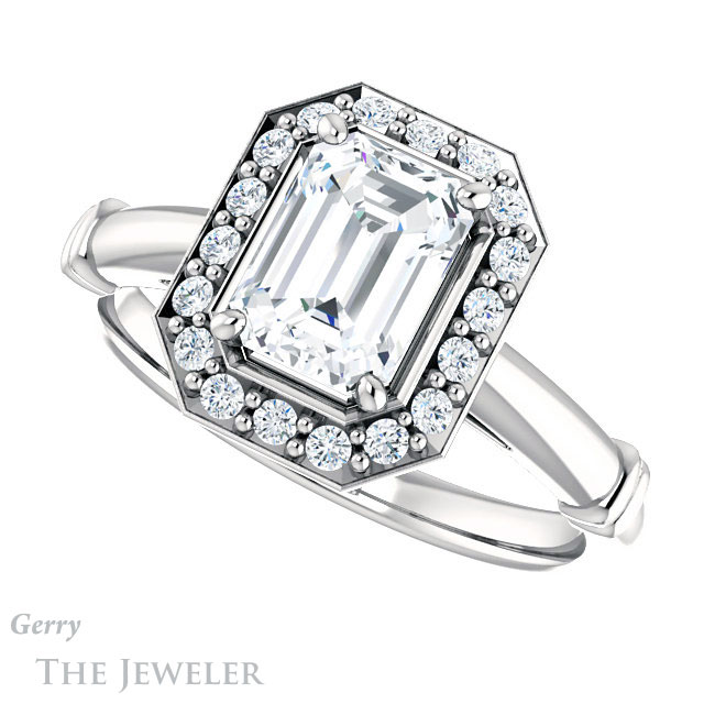 Emerald Cut Forever One Moissanite Engagement Ring #GTJ965-emerald-fb-w