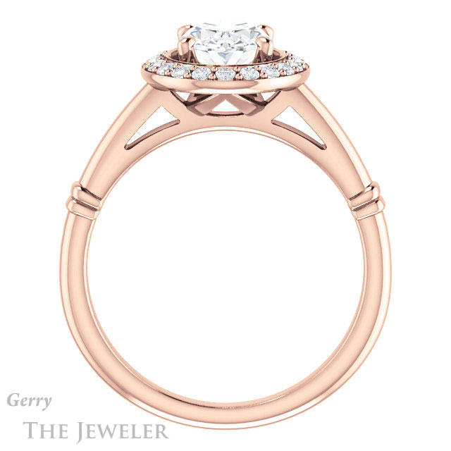 - This design can be set with your choice of certified lab grown diamond or moissanite center gem.Â