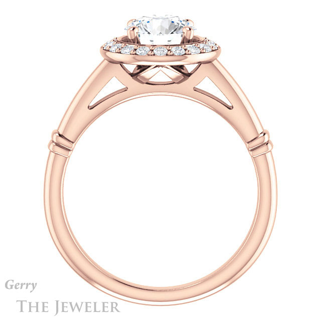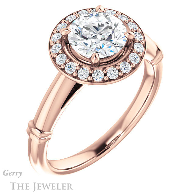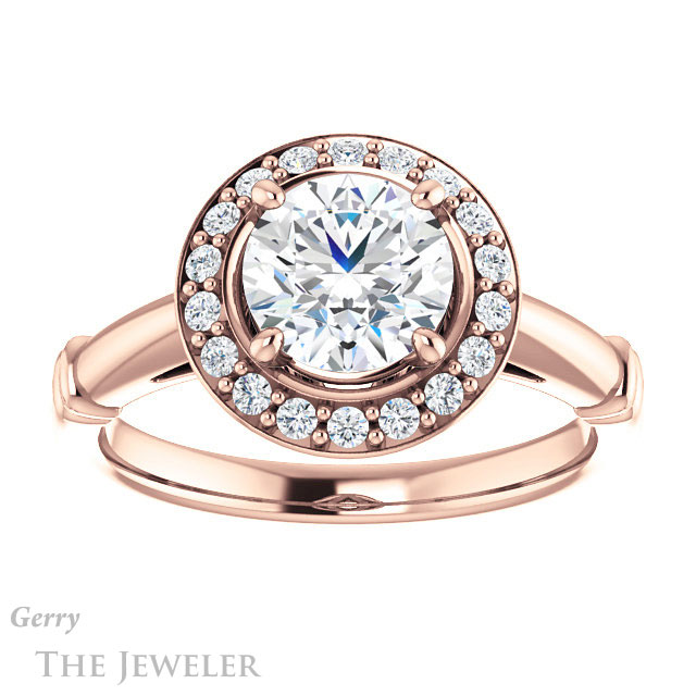 - This design can be set with your choice of certified lab grown diamond or moissanite center gem.Â