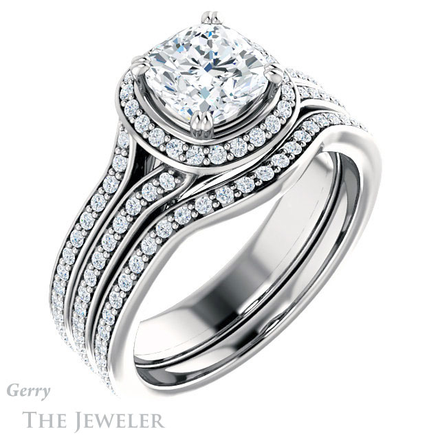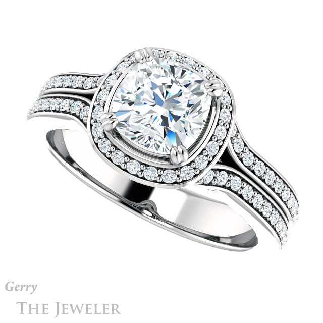 Cushion Cut Forever One Moissanite Engagement Ring #GTJ985-cushion-fo-w