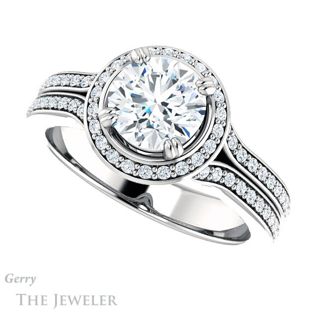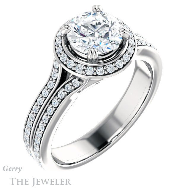 Round Cut Forever One Moissanite Engagement Ring #GTJ985-round-fo-w