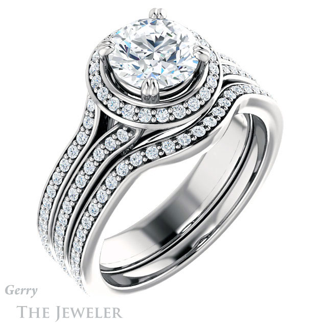- This design can be set with your choice of certified lab grown diamond or moissanite center gem.Â