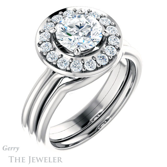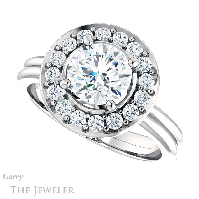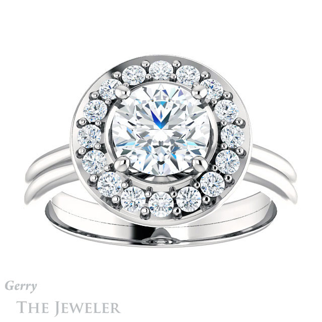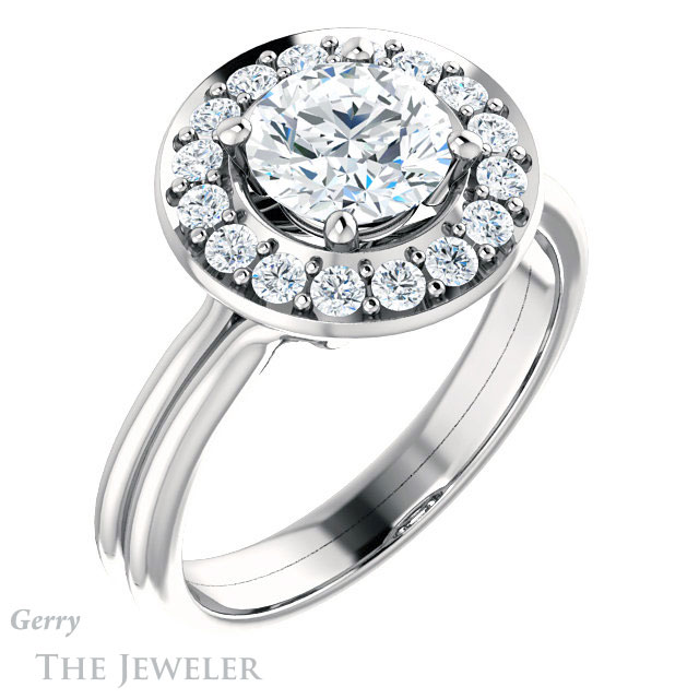 Round Cut Forever One Moissanite Engagement Ring #GTJ990-round-fo-w