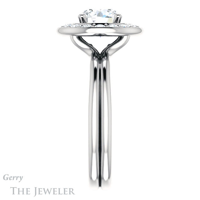 - This design can be set with your choice of certified lab grown diamond or moissanite center gem.Â