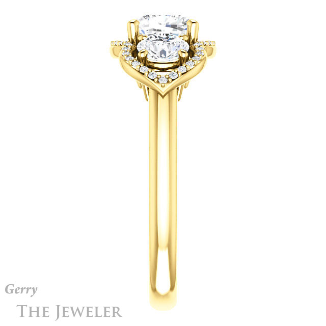 - This design can be set with your choice of certified lab grown diamond or moissanite center gem.Â