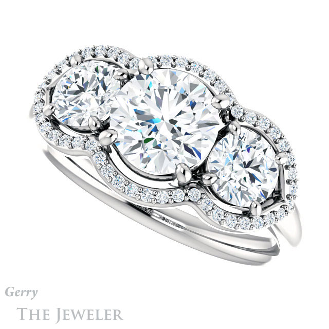 - This design can be set with your choice of certified lab grown diamond or moissanite center gem.Â