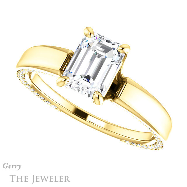 Emerald Cut Forever One Moissanite Engagement Ring #GTJ998-emerald-fb-y