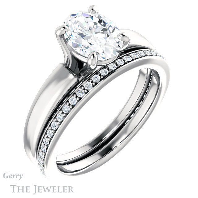 Oval Shaped Forever One Moissanite Engagement Ring #GTJ998-oval-fo-w